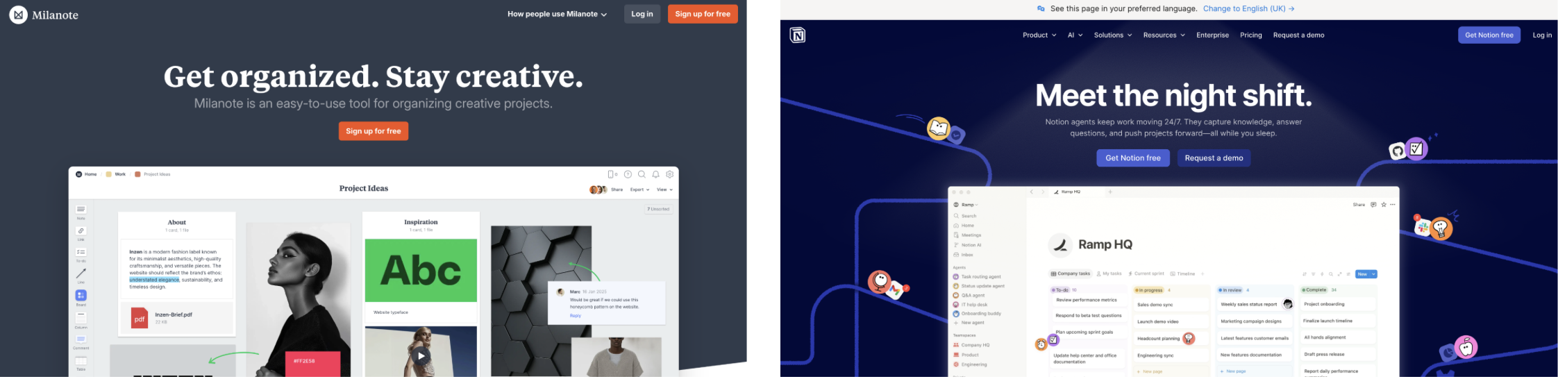 Project organization | Milanote, Notion | Both (free tiers) |