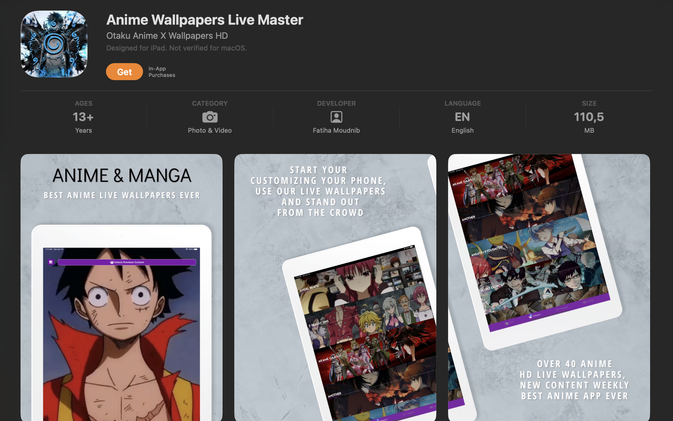 App | One Piece content | Live wallpapers | Free | HD quality | iOS rating |