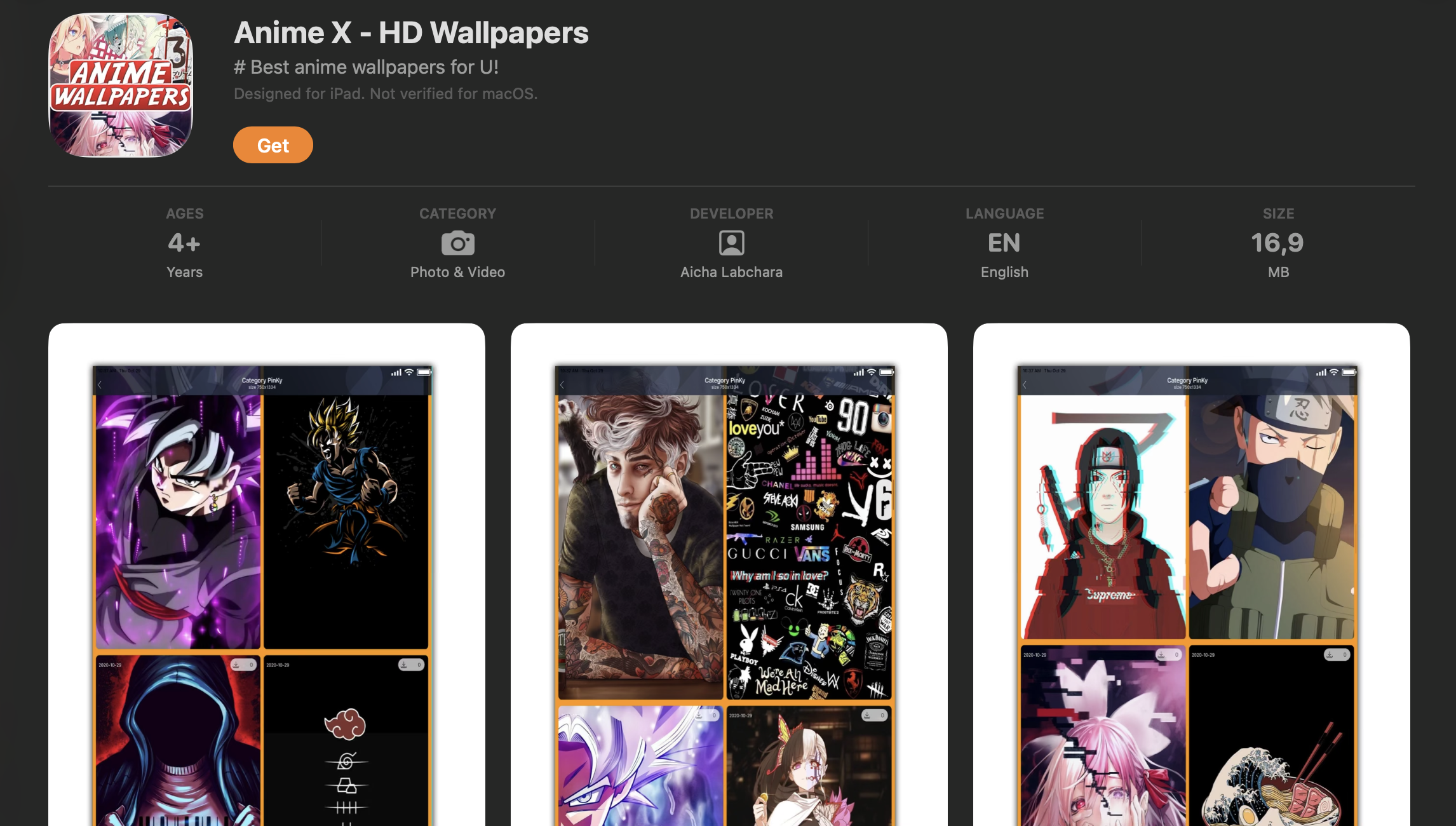 Pros: Wide anime series coverage; HD wallpapers organized by character; scan feature; regular updates; free to download