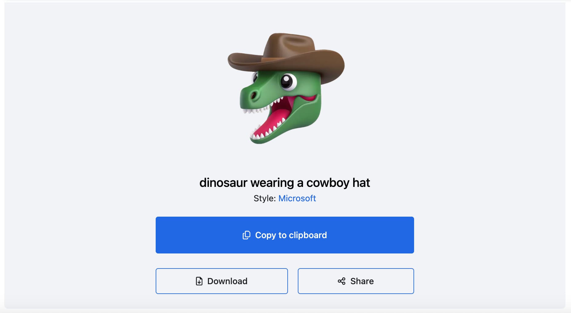 Using our new AI Emoji Generator is simple: once you have accessed the feature’s landing page, you will be asked to “Describe an emoji” (for example, a dinosaur wearing a cowboy hat) in its input field.